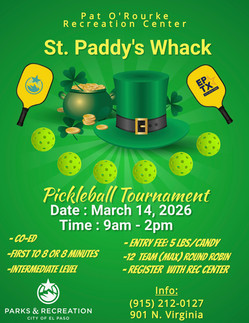 A gift basket raffle will be held at the tournament, with all proceeds benefiting Pickleball El Paso’s advocacy and outreach efforts. Please consider donating brand new or unused items that you may have on hand. We need both pickleball items (balls, paddles, hats) and non-pickleball items such as gift cards, mugs, wine, lotions, cozy socks — you name it! As long as the items are new, Terry Avalos will work her magic and create something special. Last year's gift baskets were highly coveted! To donate: Please contact Terry at 915-355-3056.